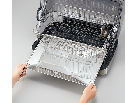Bên trong là rổ đựng chén, dĩa, đũa, muỗng,...