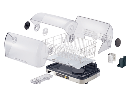 Mấy sấy chén bát thiết kế dạng lồng, bền ngoài được làm từ chất liệu nhựa tốt trong suốt.